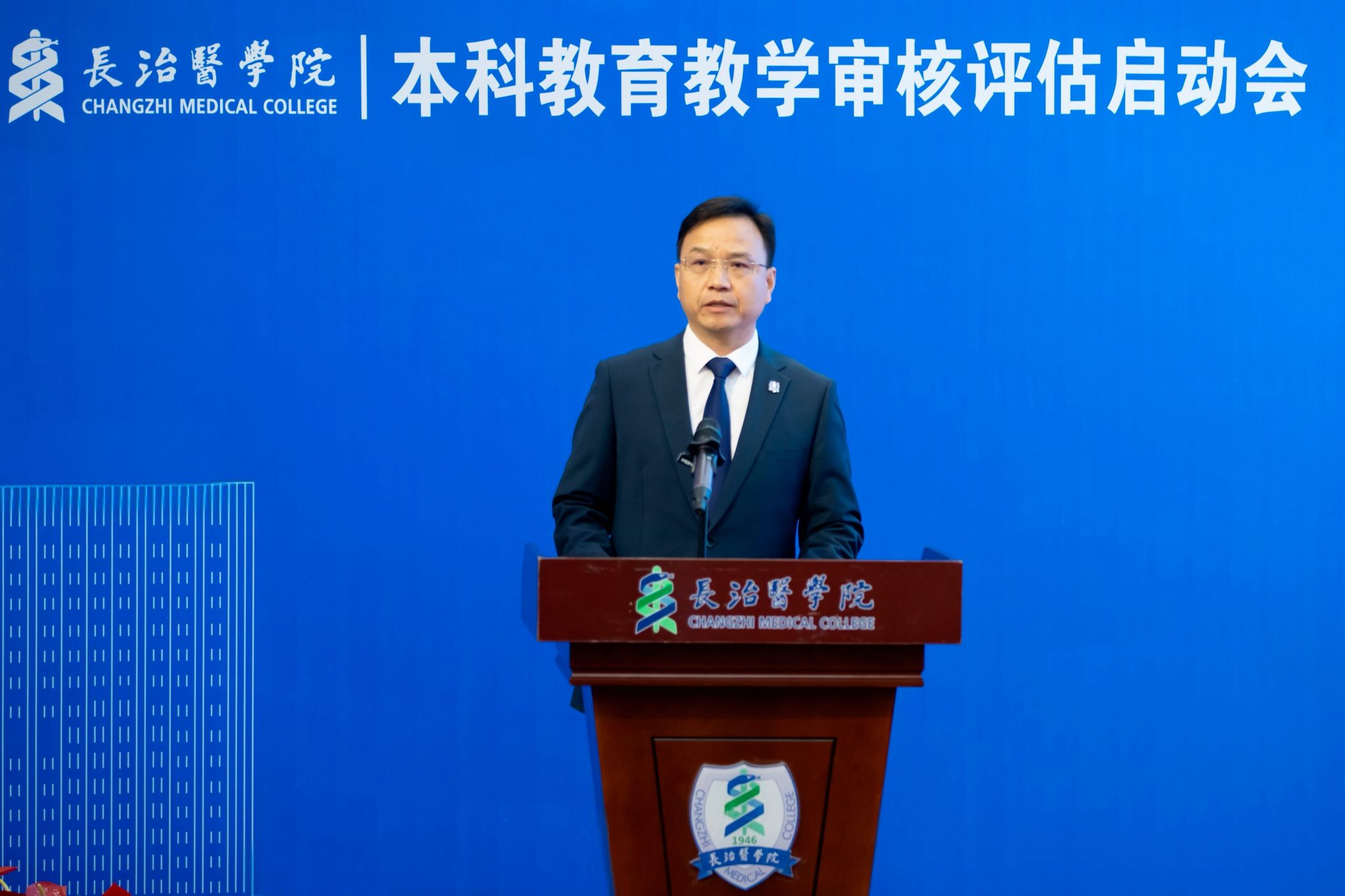 王东在讲话中充分肯定了学校在服务山西医疗卫生事业中作出的突出贡献。他希望学校以此次评估为契机,统一思想、实事求是、明确重点,深刻把握教育评价改革大势,践行评估价值导向,强化责任担当,以平常心、正常态配合好专家组工作,真正做到“以评促建、以评促改、以评促管、以评促强”,为山西高等教育和医疗卫生事业高质量发展贡献力量。